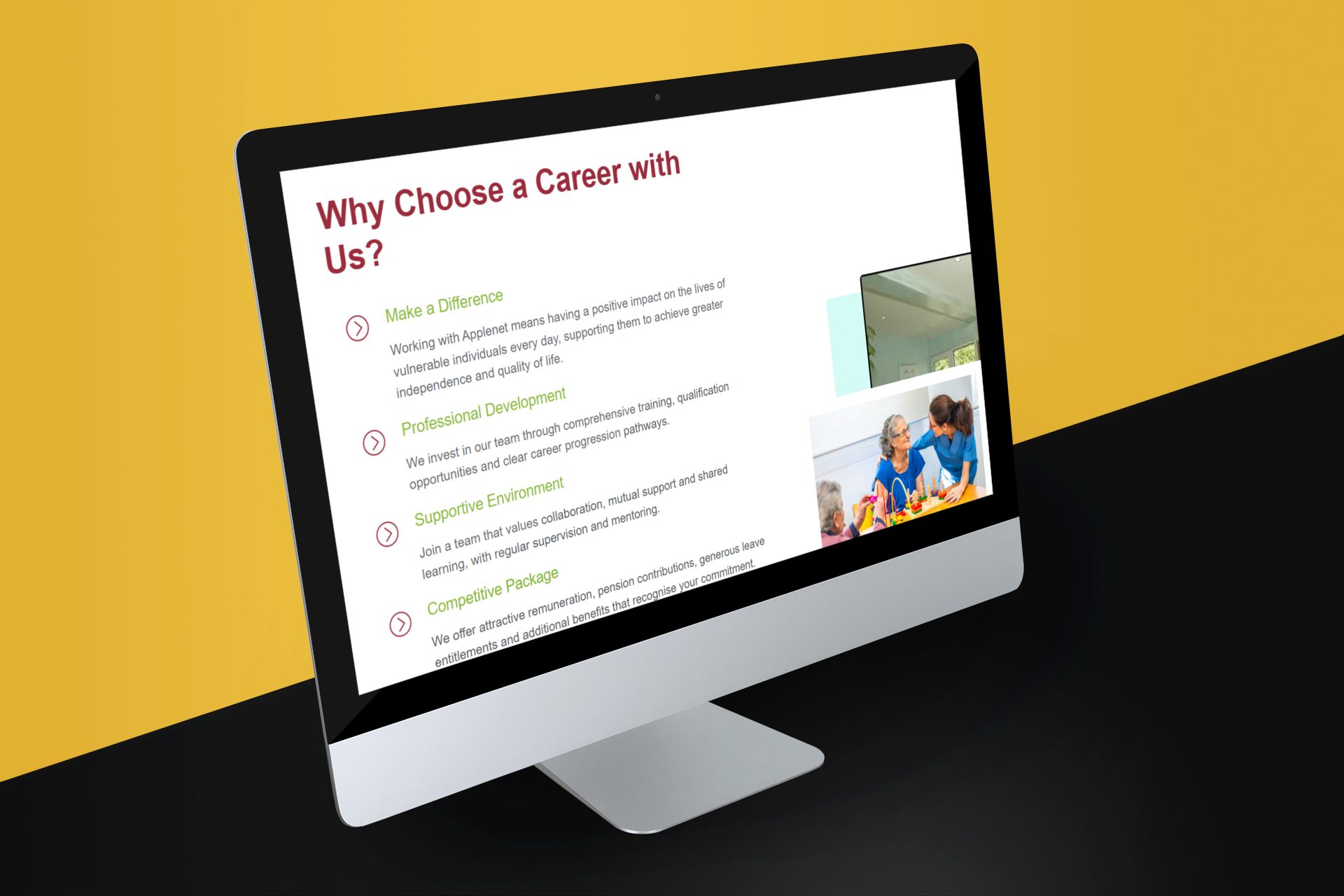 AppleNet Care delivered exceptional supported living services but struggled with a digital presence that didn’t reflect their quality of care. Their outdated website failed to effectively communicate their services and values, creating barriers for potential clients and referral partners trying to understand their offerings. Healthcare partners reported difficulty finding key information, while staff lacked cohesive materials for community outreach—directly affecting their ability to grow in the competitive care sector.